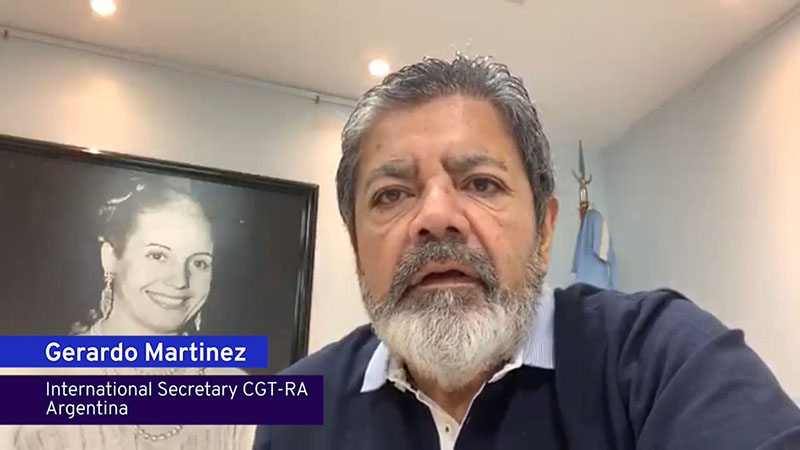 Martínez sostuvo que en la región los trabajadores sufren sistemáticas violaciones al ejercicio de la libertad sindical a partir de "persecuciones, violencia, debilitamiento de la negociación colectiva y ausencia de diálogo social", e indicó que "el incremento de la economía informal, la falta de trabajo decente en las cadenas globales de suministro, las reformas laborales regresivas y el desempleo son una alarma que no es posible dejar pasar".