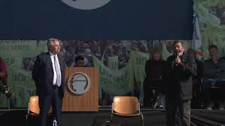 En su discurso Gerardo Martínez ratificó la necesidad de "un cambio de paradigma porque los trabajadores necesitamos una sociedad del trabajo y la economía productiva, de la ciudadanía laboral, donde el trabajo sea el motor del crecimiento, con inclusión e igualdad"